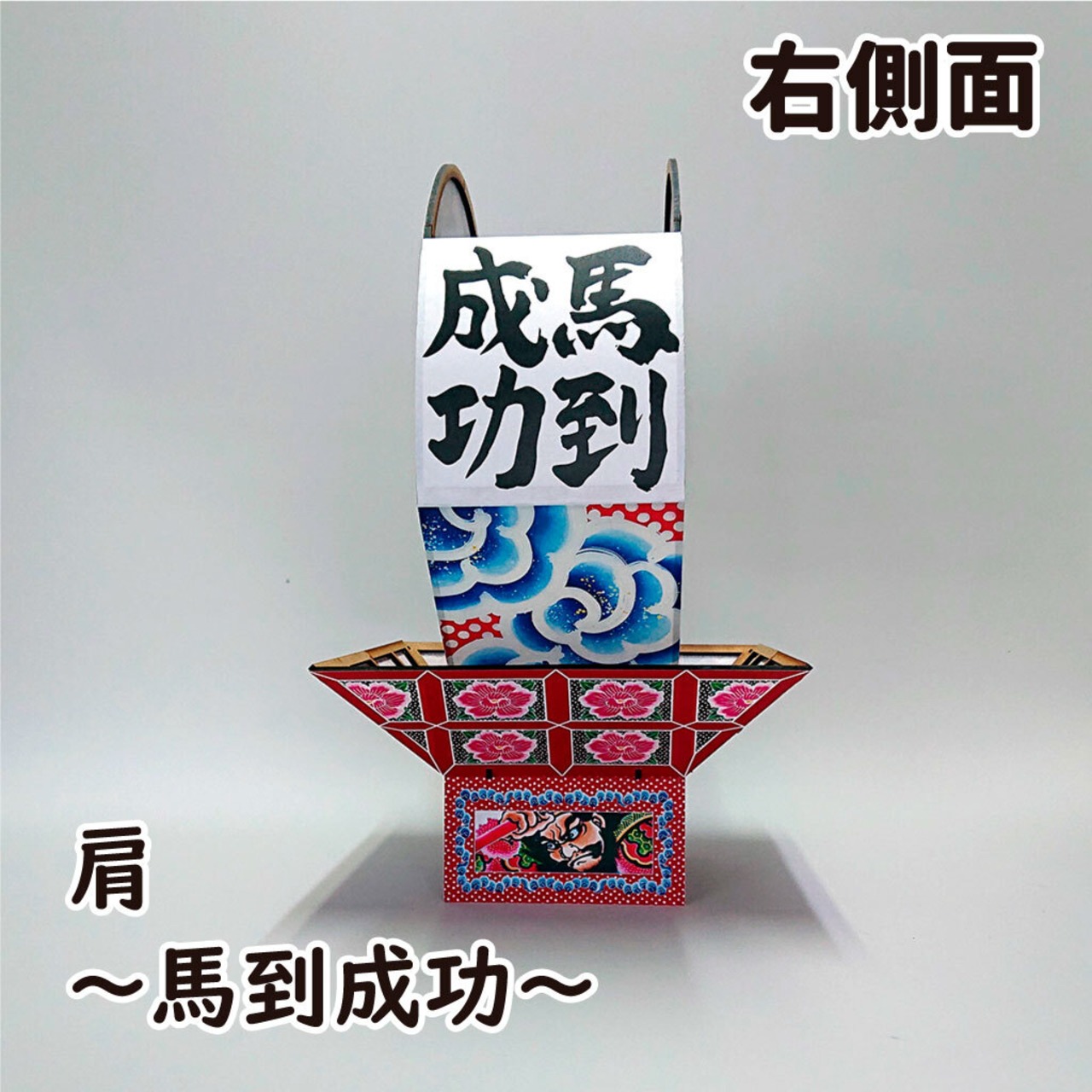 園芸用のキャスター付き台車に乗せれば、お手軽ミニねぶたにもできます。小さなお子様と一緒にねぷた運行遊びもできますよ!還暦のお祝いや厄払いの縁起物、お正月飾りにもお使いいただけます!