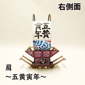 肩の文字は、こんなご時世でも健康であってほしいという願いを込めて「無病息災」と、36年に1度の五黄土星と寅年が重なるおめでたい年から「五黄寅年」を配しました。