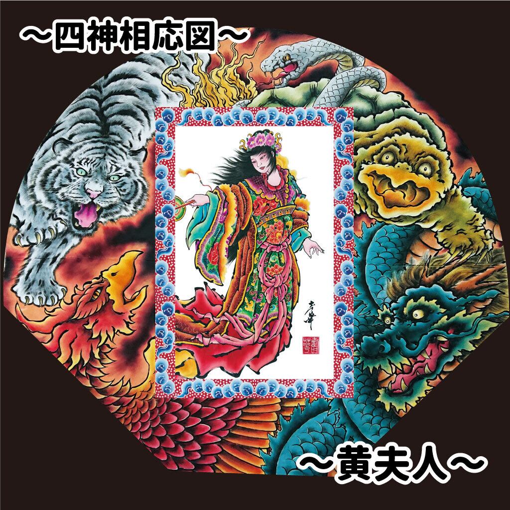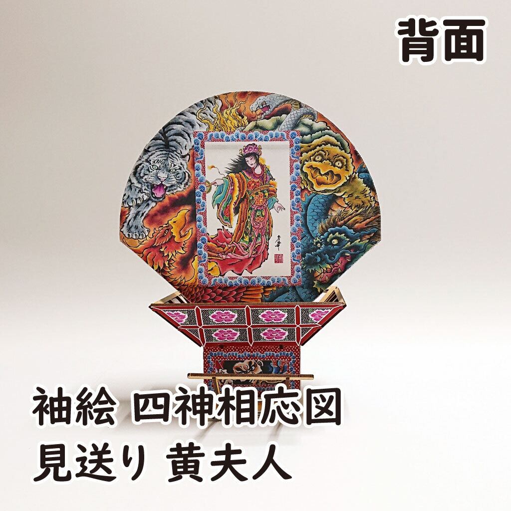 袖絵は風水に伝わる四神相応図を配し、玄武、青龍、白虎、朱雀の守りが得られるようにとの思いを込めています。