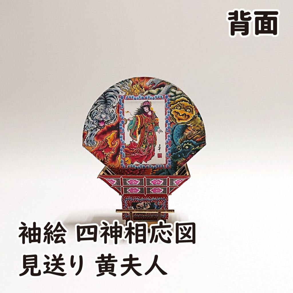 袖絵は風水に伝わる四神相応図を配し、玄武、青龍、白虎、朱雀の守りが得られるようにとの思いを込めています。