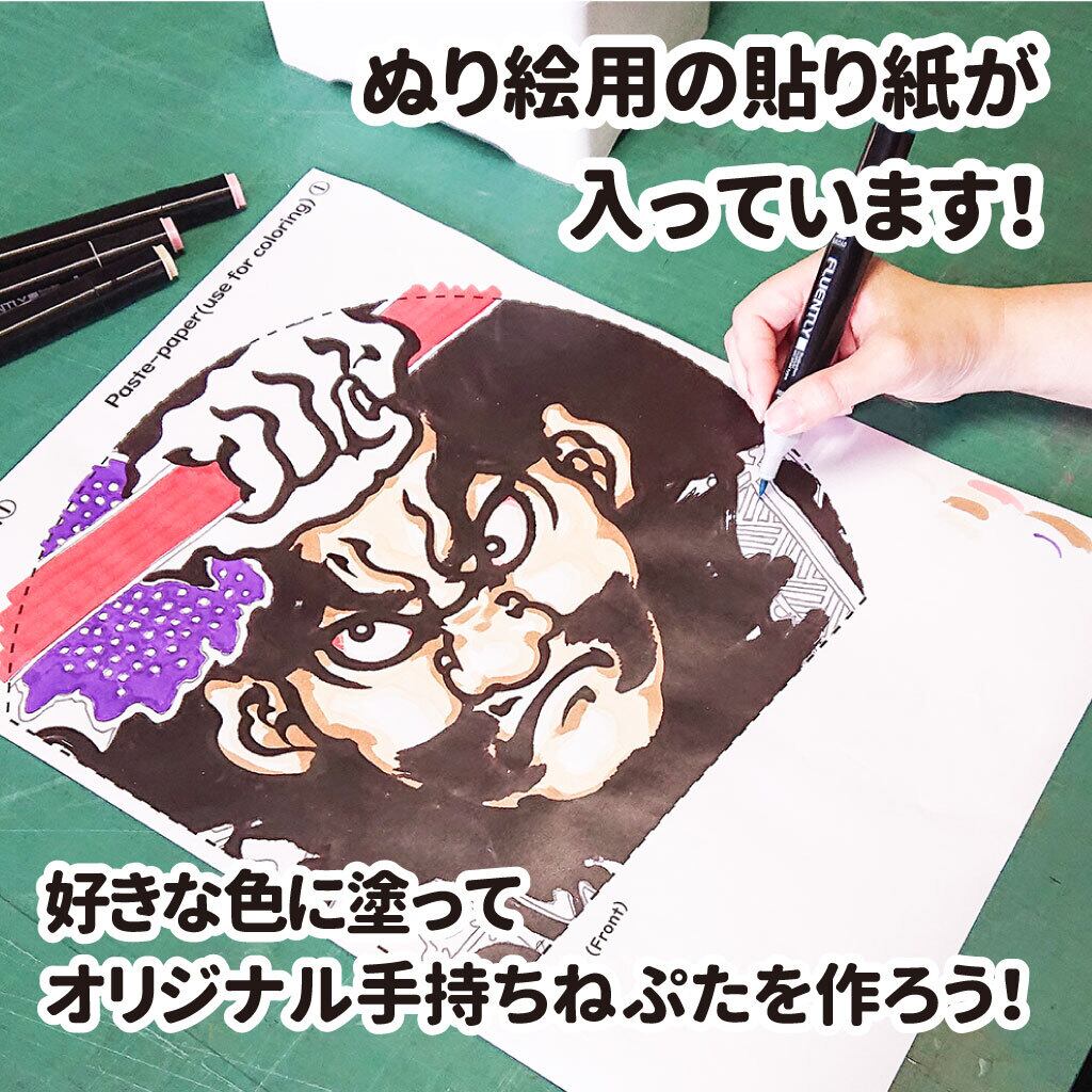 ねぷた絵と別に、山谷寿華先生の絵をベースにした塗り絵用の紙と無地の紙も同封しています。好きな色を塗って作ったり、オリジナル絵柄を描き、世界で1つだけの手持ちねぷたを組み立てることもできます!夏休みの工作など、課題にも使えるかも?