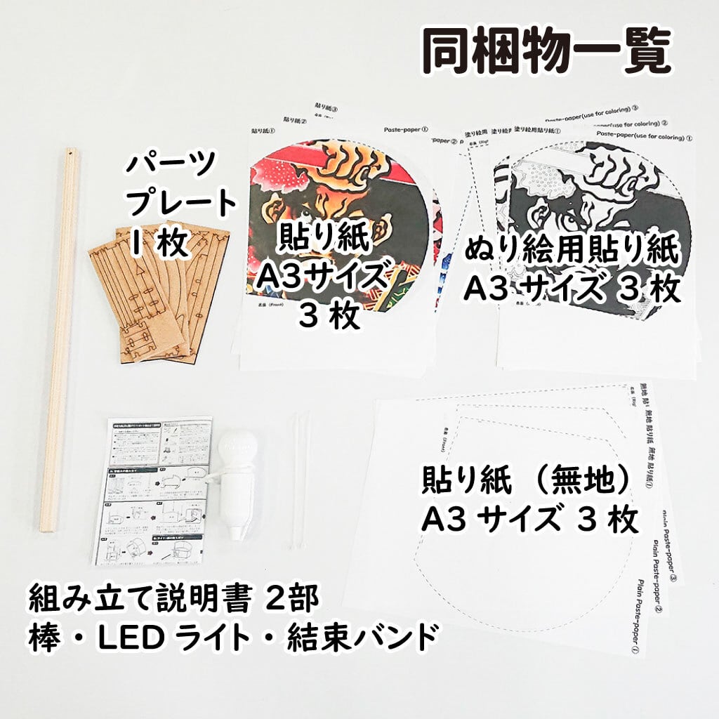 あらかじめカットされたパーツを組み立て、紙を貼り付けるだけで、本格的な扇ねぷたを作ることができるクラフトキットです。