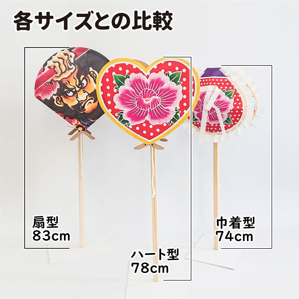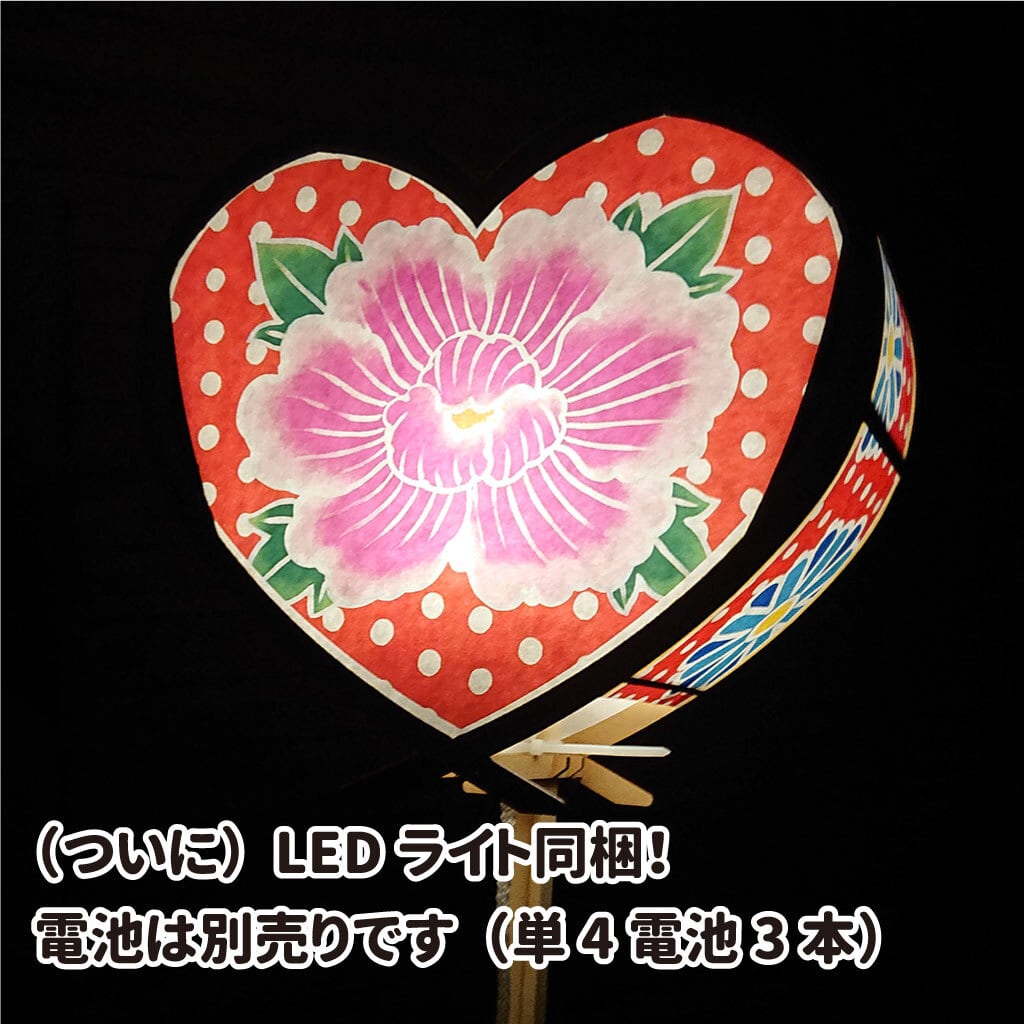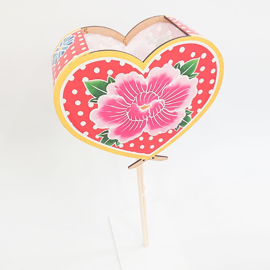 かつては各町内のねぷた製作資金を集める際、子供たちが手持ちねぷたをもって家々を回ったものでした。現在ではねぷた運行の際に掲げられています。もともと手持ちねぷたにハート型はありませんが、巾着ねぷたよりも簡単に作れるものをという思いから製作しました。