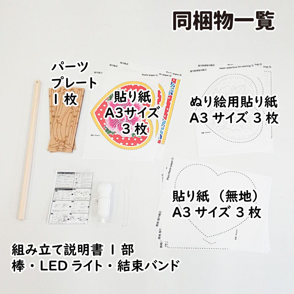 あらかじめカットされたパーツを組み立て、紙を貼り付けるだけで、本格的な扇ねぷたを作ることができるクラフトキットです。